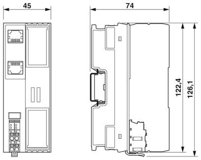 | Указание по размерам | Глубина имеет значение при использовании монтажной рейки TH 35-7.5 (согласно EN 60715). |