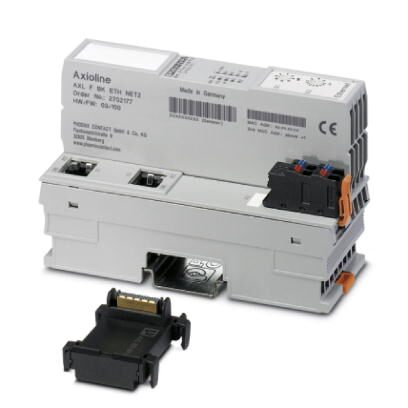 Axioline F, Устройство сопряжения с шиной, Ethernet (2 сети), Гнездо RJ45, скорость передачи данных в локальной шине: 100 Мбит/с, cтепень защиты: IP20, с цокольным модулем и Axioline F штекером
