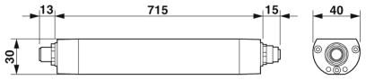 Светодиодный станочный светильник, 24 В DC, угол отражения 85 °/95 °, цветовая температура 5000 K, длина 715 мм, диаметр 40 мм, Штекерный соединитель M12, Корпус светильника: Алюминий, анодированный, Стекло: Однолистовое ударопрочное стекло (ESG, термически преднапряженное, термополированное стекло), поворотный, Стойкость к воздействию охлаждающих и смазочных материалов, возможность последовательного подключения