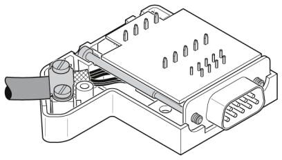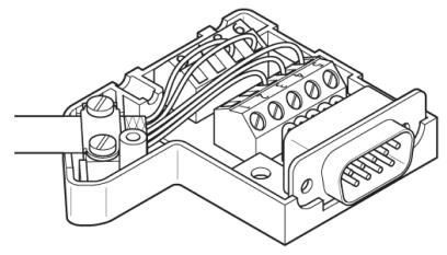 Разъем D-SUB, 9-полюсный, штыревой, кабельный ввод под углом 35°, универсальный тип для всех систем, расположение выводов: 1, 2, 3, 4, 5, 6, 7, 8, 9 на винтовой клемме