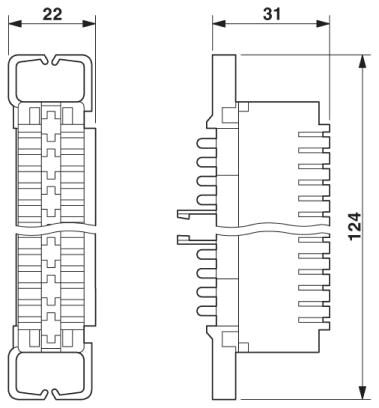 Разъединяющая колодка LSA-PLUS, для установки защитного модуля CTM и CT 10. Исполнение: 10 сдвоенных проводников, размер A: 124 мм.