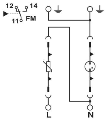 Универсальный молниеотвод / УЗИП на базе варисторов для 1-фазных цепей электропитания с отдельными проводниками N и PE (3-проводная система: L1, N, PE), с контактом для удаленной передачи сигнала.