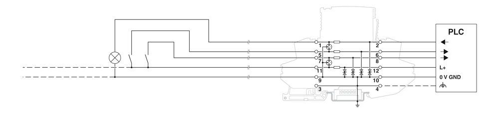 | Указание | Сигнал удаленного оповещения, а также питание шинного соединителя для монтажных реек подключается при подсоединении модуля к шинному соединителю. |