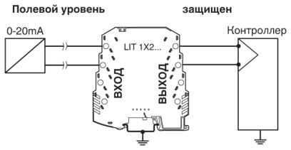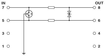 УЗИП в форме монолитного модуля шириной 6,2 мм устанавливаемого на монтажную рейку, для защиты одной сигнальной цепи без потенциала земли (2-проводные устройства). Испытано на соответствие требованиям по искробезопасности для взрывоопасных зон: Ex ia IIC / Ex iaD. Совместимость с HART.