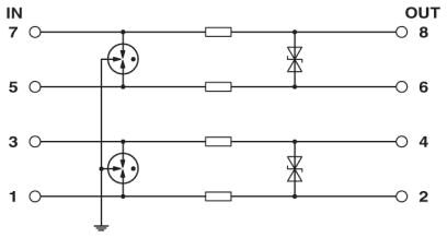 УЗИП в форме монолитного модуля шириной 6,2 мм устанавливаемого на монтажную рейку, для защиты двух сигнальных цепей без потенциала земли (2-проводные устройства). Испытано на соответствие требованиям по искробезопасности для взрывоопасных зон: Ex ia IIC / Ex iaD. Совместимость с HART.