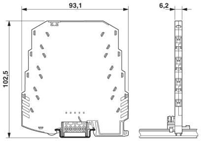 УЗИП в форме монолитного модуля шириной 6,2 мм устанавливаемого на монтажную рейку, для защиты двух сигнальных проводов без потенциала земли, без реактивных сопротивлений. Испытано на соответствие требованиям по искробезопасности для взрывоопасных зон: Ex ia IIC / Ex iaD