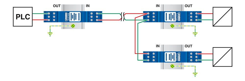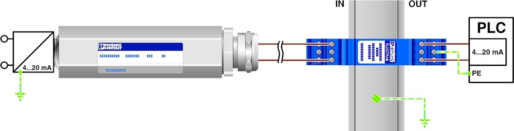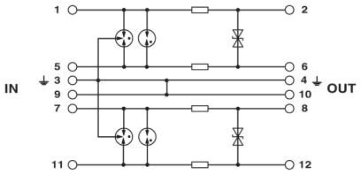 Защитный штекер РТ, со схемой защиты для двух 2-проводных сигнальных цепей Ex i без потенциала земли. Номинальное напряжение: 24 В DC, поддержка HART.