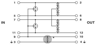 Защитный штекер РТ, со схемой защиты 4-проводной сигнальной цепи без потенциала земли. Номинальное напряжение: 24 В постоянного тока