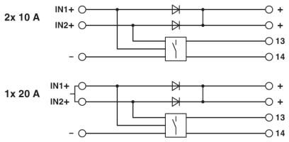 Резервный модуль с функциональным контролем, 48 В DC, 2x 10 A, 1x 20 A