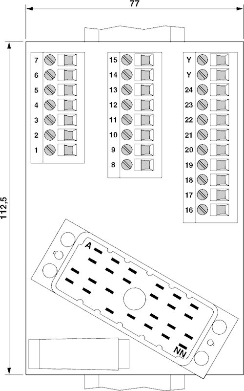 Интерфейсный модуль, Подключение 1: Винтовые зажимы 25-полюсн., Подключение 2: Соединитель Elco 1x 25-полюсн. (Штыревой разъем типа 8016 (класс искробезопасности EEx i), левый)
