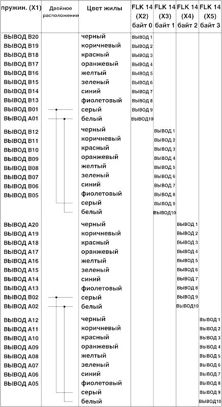 Штекерный соединитель 1 = штекерный соединитель 2 (опционально) = цвет жилы | Fujitsu40 (B20) = IDC/FLK14-1 (1) = черный |