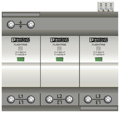 Вставной грозозащитный разрядник для высокого номинального напряжения, соотв. типу 1 / класс I, для 3-фазных сетей электропитания с исполнением TN и IT (L1, L2, L3, PE).