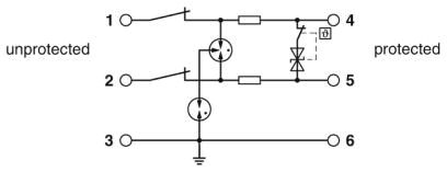 Устройство защиты от перенапряжений (защитный штекер и базовый элемент), со встроенным индикатором состояния и ножевыми размыкателями для 2-проводной сигнальной цепи Ex-i без потенциала земли, например токовых контуров 0(4) ... 20 мА, совместимость с HART.