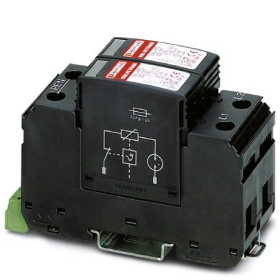 2-полюсный разрядник для защиты от перенапряжений, устанавка на DIN-рейку, для схемы 2+0, термодинамический контроль, визуальный индикатор неисправностей / контакт для дистанц. передачи сигнала.