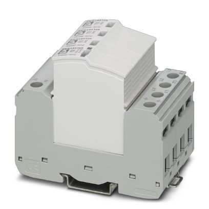 Вставной разрядник для защиты от перенапряжений, тип 2 / класс II, 3-фазных сетей электропитания с проводниками N и PE (5-проводные системы: L1, L2, L3, N, PE), с контактом удаленного оповещения. С пропускной способностью 40 кА в соответствии с требованиями VDE 0100-534:2016-10 к SPD на точке запитывания установки.