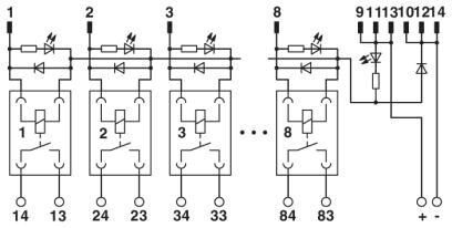 Модуль вывода VARIOFACE, с 8 вставными миниатюрными реле с 1 замыкающим контактом в каждом, для цепей 24 В постоянного тока (реле входят в комплект поставки)