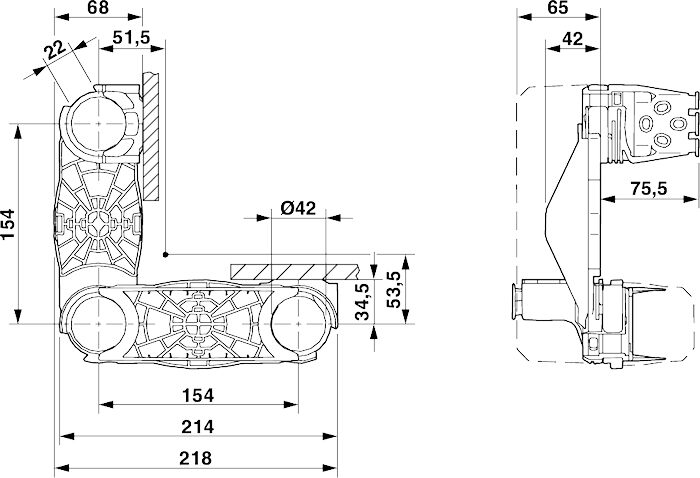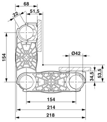 Система ввода кабелей, с шарнирным соединением для открывания, длина: 218 мм, ширина: 68 мм, высота: 140,5 мм, диаметр: 42 мм, цвет: cерый