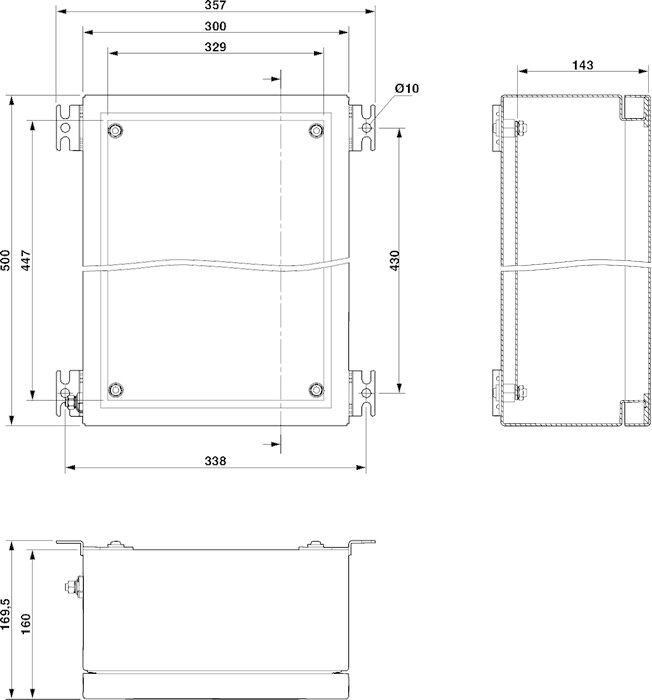 Клеммная коробка, mатериал: Высококачественная сталь 316L / 1.4404, поверхностное сопротивление: сатинированный, cеребристый, 300 мм x 500 мм x 160 мм, тип замка: Дверь со сменным шарниром, комплект поставки - ATD: Дверной шарнир с затвором на четверть оборота, Монтажная плата, ключ с двумя бородками, Крепежный кронштейн в комплекте с винтами, Штифты заземления M12, расположенные снаружи, Инструкция по монтажу, Дверной шарнир с затвором на четверть оборота