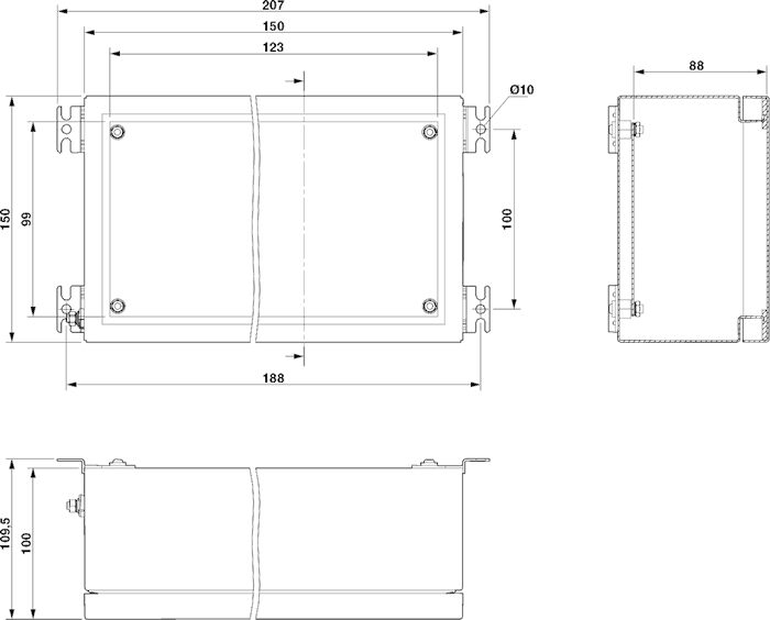 - Возможна установка фланцевых пластин с четырех сторон корпуса вместе с уплотнительной защитой