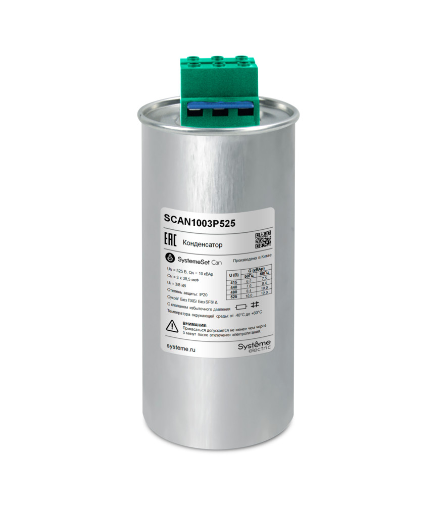 Systeme Electric SCAN1003P525 Косинусный трёхфазный конденсатор 10кВАр, 525В, тип C (SCAN1003P525): цена, характеристики, отзывы, фото, инструкция - купить Конденсаторы SCAN1003P525 в Москве оптом