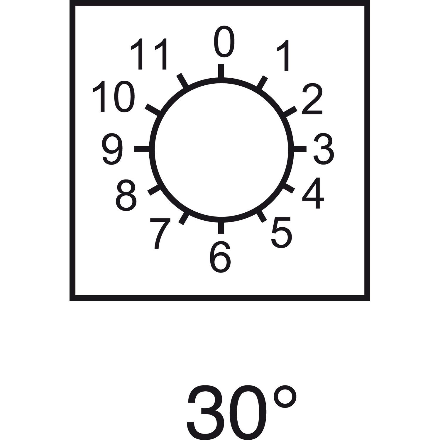 | маркировка | 0...11, точки переключения: 0-30°-60°-90°-120°-150°-180°-210°-240°-270°-300°-330° белый черный фон |