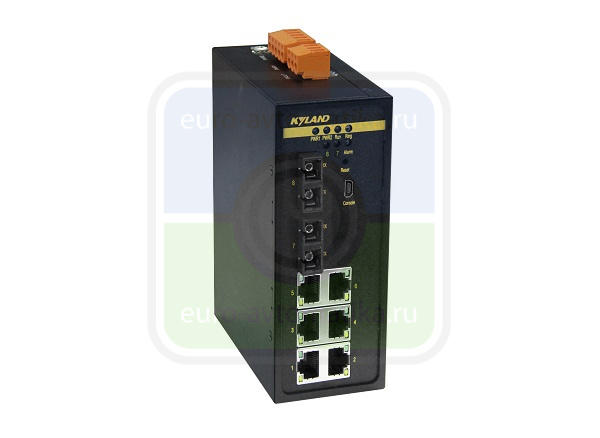 Управляемый коммутатор c 6 портами 10/100Base-T(X) (разъем RJ45), 2 портами 100Base-FX (многомод, разъем SC, 5 км), два входа питания 24 В пост.