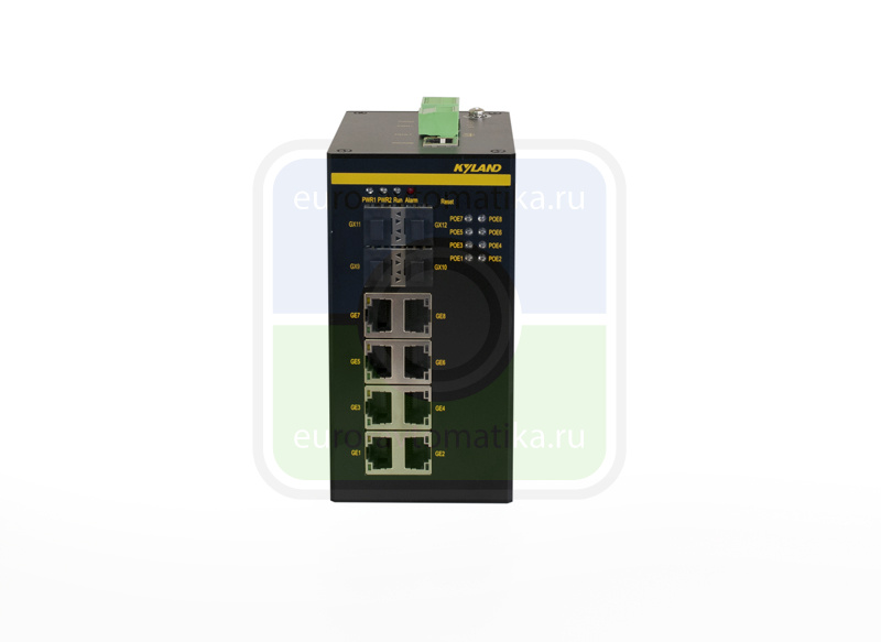 Управляемый коммутатор c 4 слотами 100/1000Base-X SFP, 8 портами 10/100/1000Base-T(X) PoE (разъем RJ45), два входа питания 48 В пост.