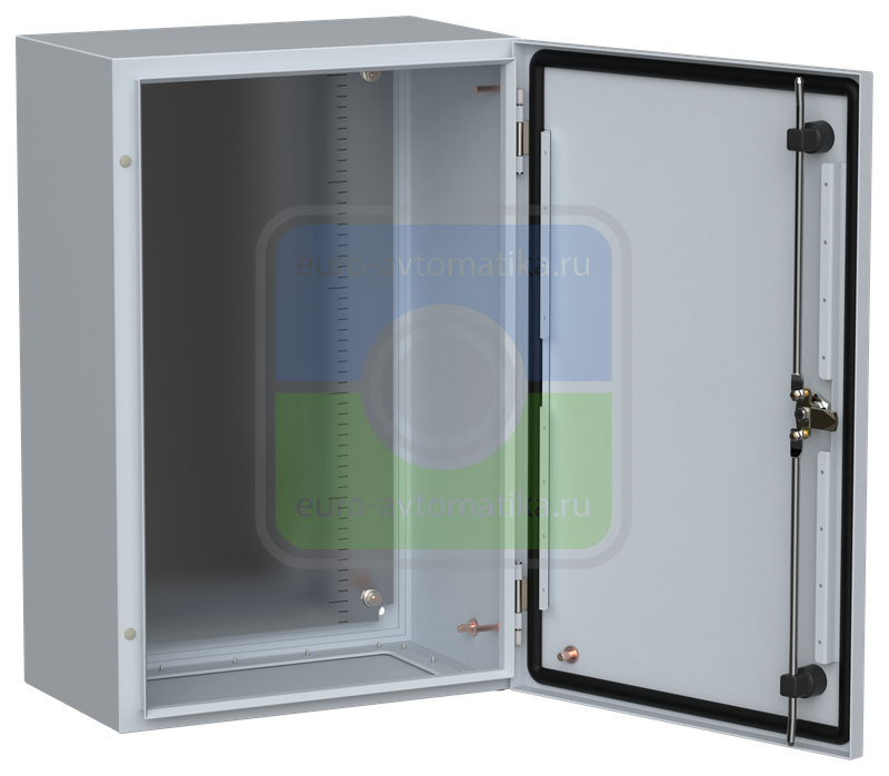 - Трехточечное запирание двери одним поворотом ключа (для корпусов высотой от 500 мм).