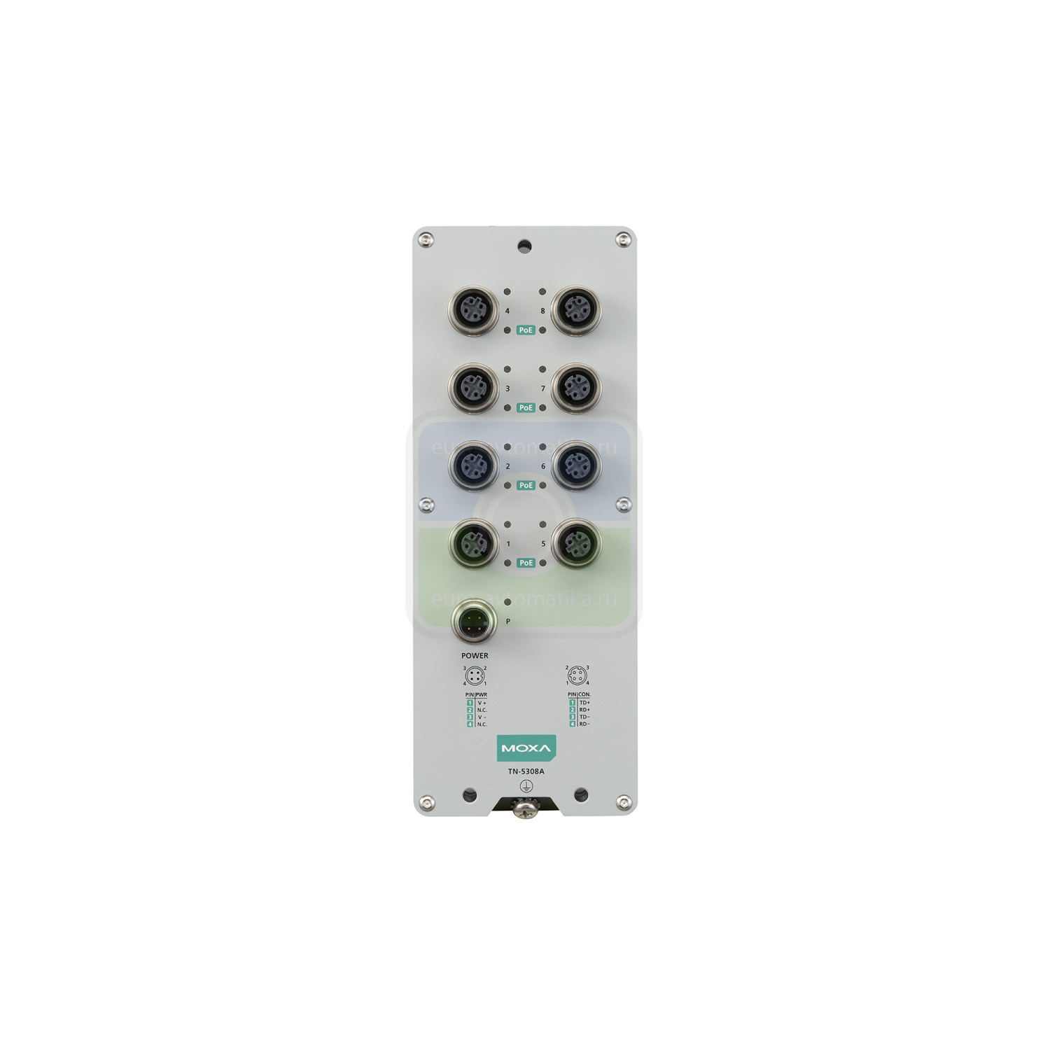 Неуправляемый Ethernet-коммутатор EN 50155 с 8 портами 10/100BaseT(X) и PoE, разъем M12, один вход питания, 24–110 В пост. тока, с расширенным диапазоном температур и конформным покрытием