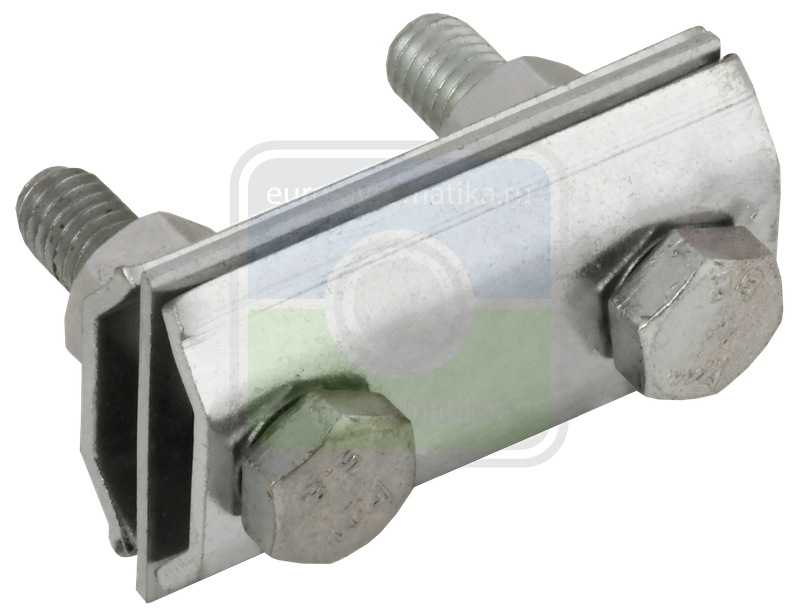 Зажим соединительный сквозной двойной пруток-пруток предназначен для соединения круглых проводников. Способен зажимать проводники как соосно, так и параллельно друг другу. Состоит из трёх пластин и зажимных болтов с гайками. Двухрядная конструкция соединителя позволяет зажимать до 4-х проводников в соединении. Материал корпуса - нержавеющая сталь.