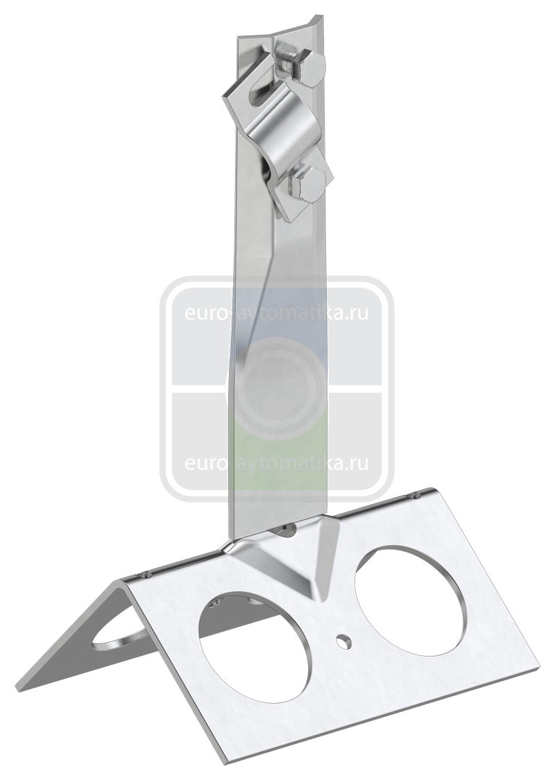 скатной кровли. Держатель крепится к кровле при помощи метизов. Зажим проводника происходит при помощи болтового соединения. Материал корпуса - нержавеющая сталь.