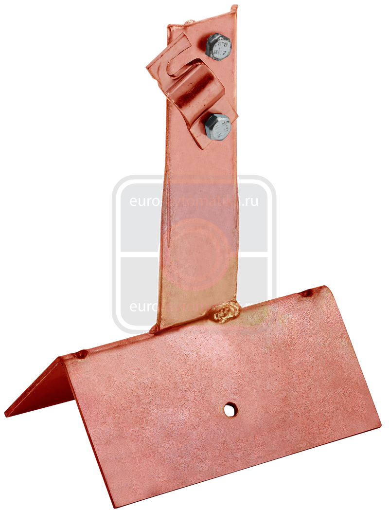 скатной кровли. Держатель крепится к кровле при помощи метизов. Зажим проводника происходит при помощи болтового соединения. Материал корпуса - медь.