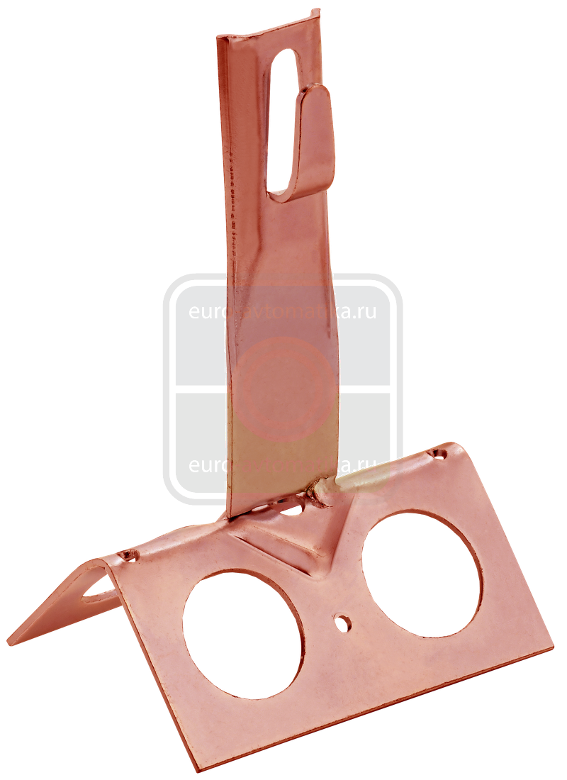 скатной кровли. Зажим проводника происходит путем загибания «язычка» держателя. На коньке крепится при помощи метизов. Материал корпуса - медь.