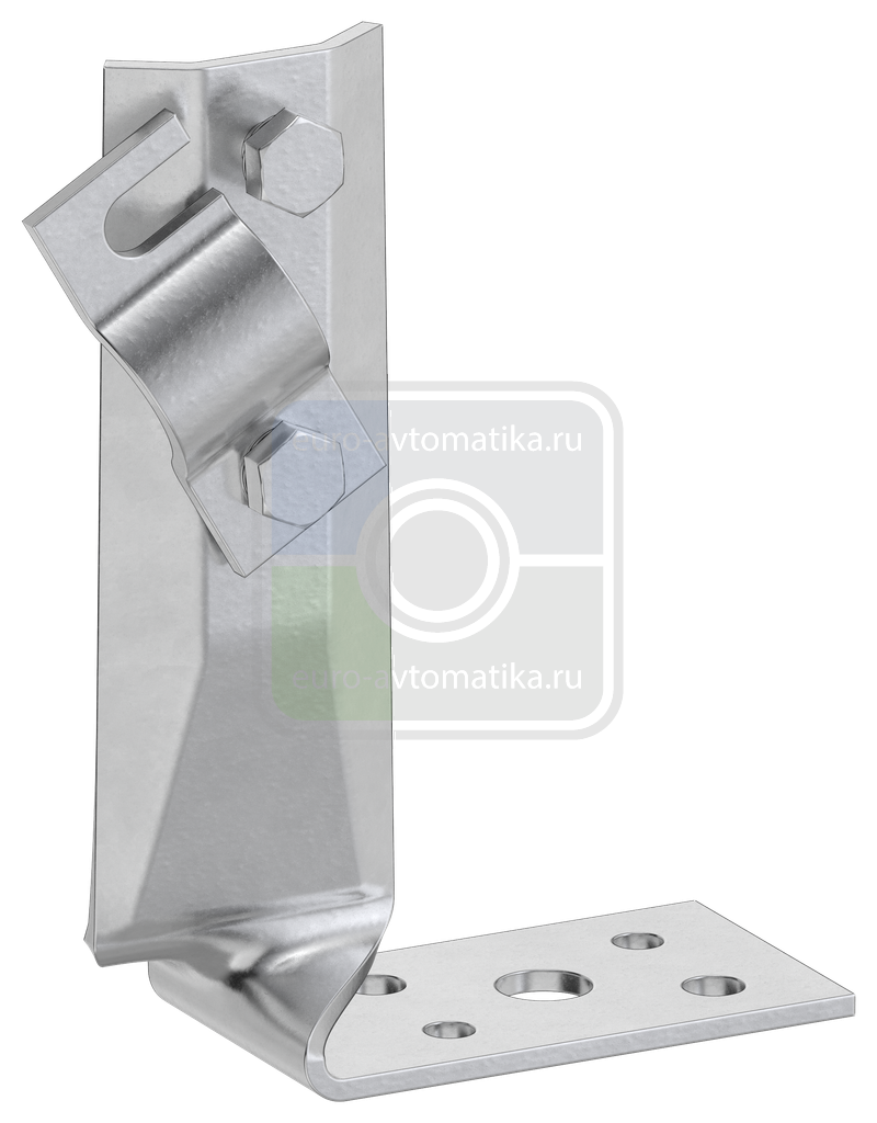 Держатель угловой скрученный с болтовым зажимом предназначен для монтажа проводника на горизонтальные, вертикальные или наклонные поверхности. Скрученная конструкция держателя позволяет крепить проводник на узкие парапеты. Монтируется на поверхности при помощи саморезов. Зажим проводника происходит при помощи болтового соединения. Материал корпуса - сталь с гальваническим цинковым покрытием.