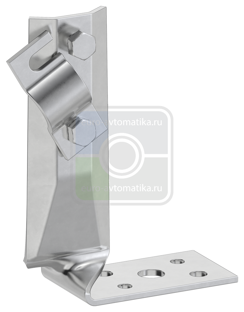Держатель угловой скрученный с болтовым зажимом предназначен для монтажа проводника на горизонтальные, вертикальные или наклонные поверхности. Скрученная конструкция держателя позволяет крепить проводник на узкие парапеты.