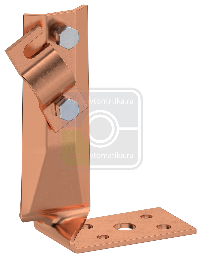 Держатель угловой скрученный с болтовым зажимом предназначен для монтажа проводника на горизонтальные, вертикальные или наклонные поверхности. Скрученная конструкция держателя позволяет крепить проводник на узкие парапеты.