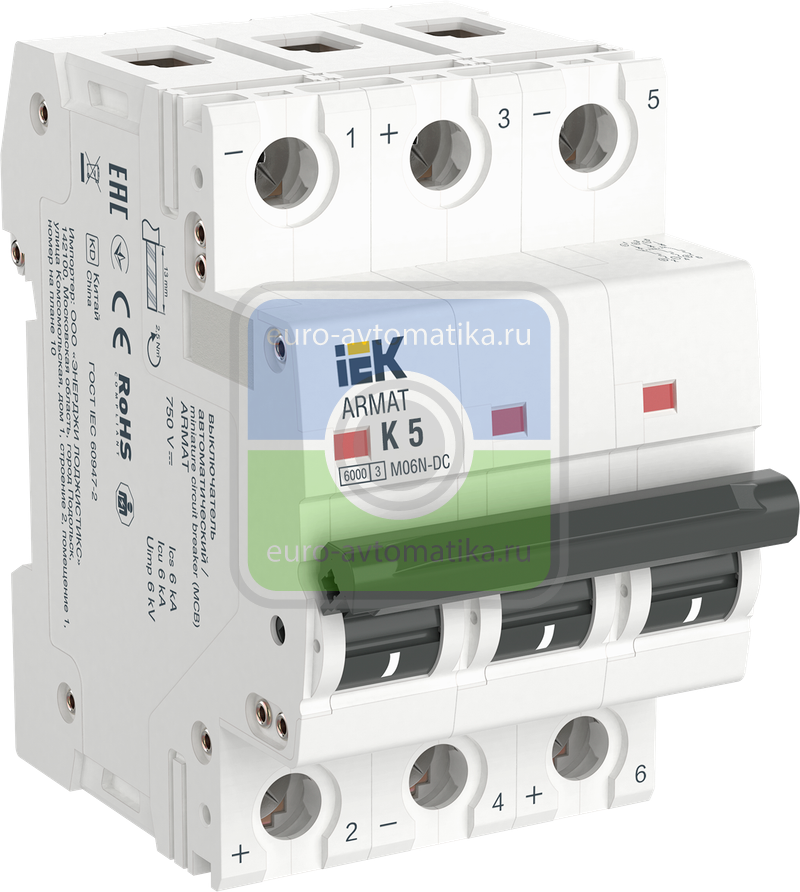 | Номин отключающая способность при коротком замыкании EN 60898 при 400 В, кА | 6.0 |