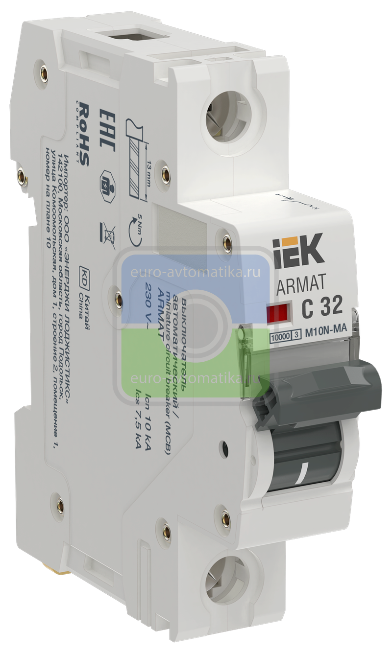 Автоматические выключатели без теплового расцепителя ARMAT серии M10N MA предназначены для защиты цепей от короткого замыкания. Основная область применения выключателя - системы аварийной вентиляции и пожаротушения. Модельный ряд включает в себя устройства с характеристиками срабатывания C, D на номинальные токи от 1А до 63А с числом полюсов 1Р, 2Р, 3Р. Номинальная наибольшая отключающая способность автоматических выключателей ARMAT серии M10N MA составляет 10 кА.