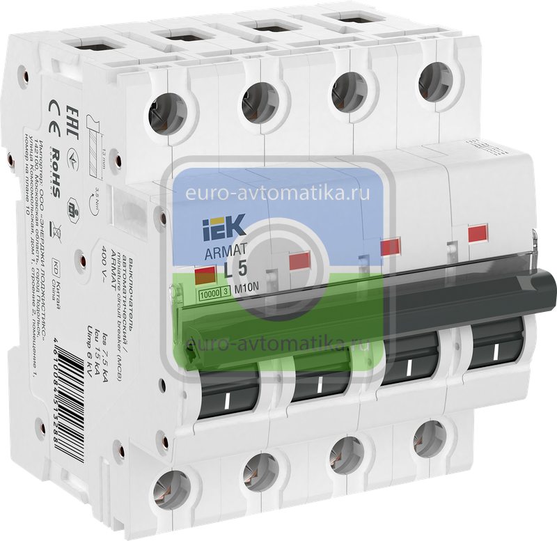 Автоматические выключатели ARMAT серии M10N предназначены для защиты цепей от перегрузки и короткого замыкания. Модельный ряд включает в себя устройства с характеристиками срабатывания B, C, D и номинальными токами от 0,5 до 63 А. Номинальная отключающая способность автоматических выключателей ARMAT серии M10N составляет 10 кА. Предельная отключающая способность варьируется в зависимости от номинала от 10 до 50 кА.