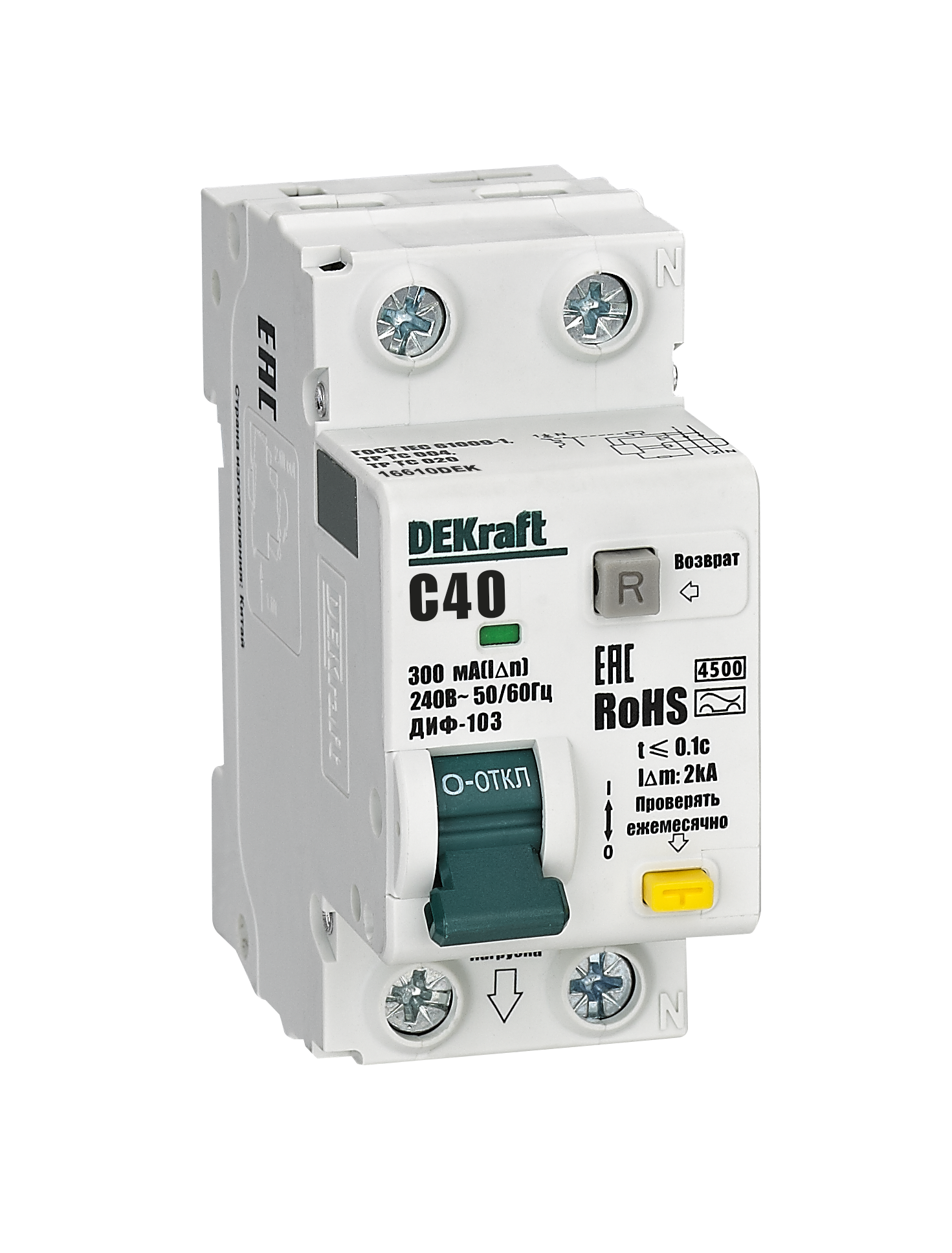 ETIM класс: EC000905 - Автоматический выключатель дифференциального тока (дифавтомат, АВДТ)