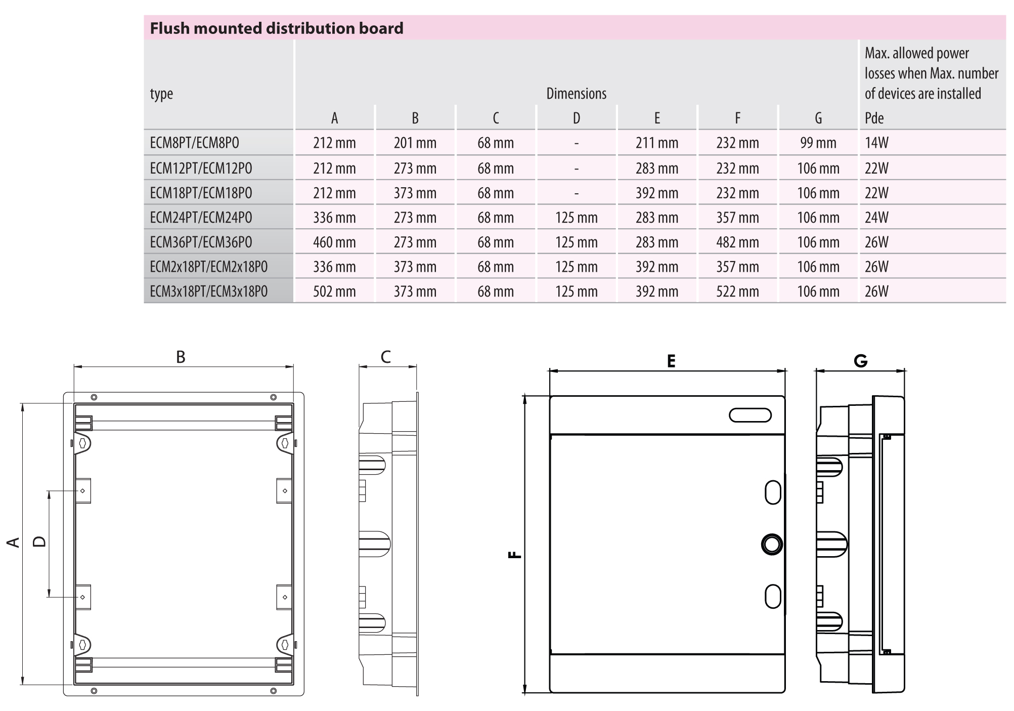 Несмотря на простоту конструкции, выбор и монтаж пластикового бокса лучше доверить профессиональному электрику, т. к. от этой детали во многом зависит удобство и безопасность использования электрооборудования. Ошибки, допущенные при установке изделия, могут привести к возгоранию. Основные технические характеристики модели ECМ 2x18PT (36 модулей прозрачная дверь) внутреннего исполнения Распределительный щит: