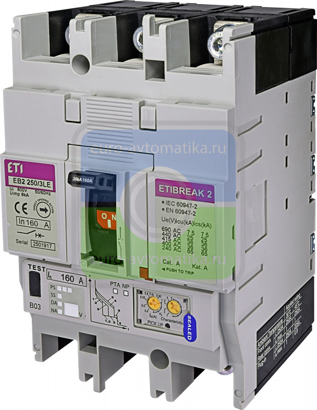 ETI Авт. Выключатель EB2 250/3LE 160A 3p (36kA) 3Р (арт.4671353) (4671353): цена, характеристики, отзывы, фото, инструкция - купить Силовые автоматы 4671353 в Москве оптом