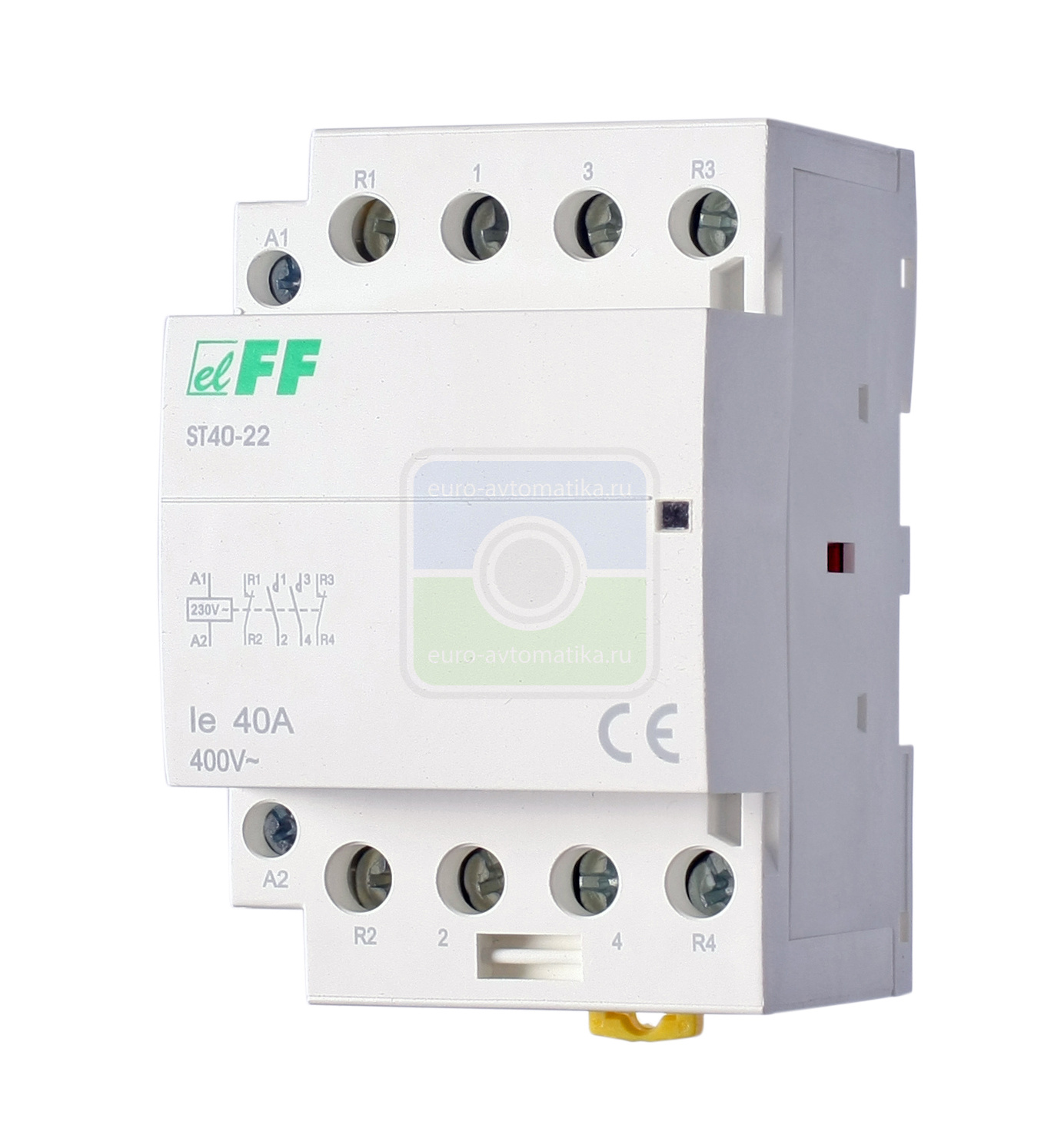 Принцип действияПодача напряжения питания на катушку контактора приводит к переключению контактов. Рабочее состояние контактора сигнализируется поднятым красным флажком на лицевой панели. После отключения напряжения питания контакты возвращаются в своё первоначальное положение.