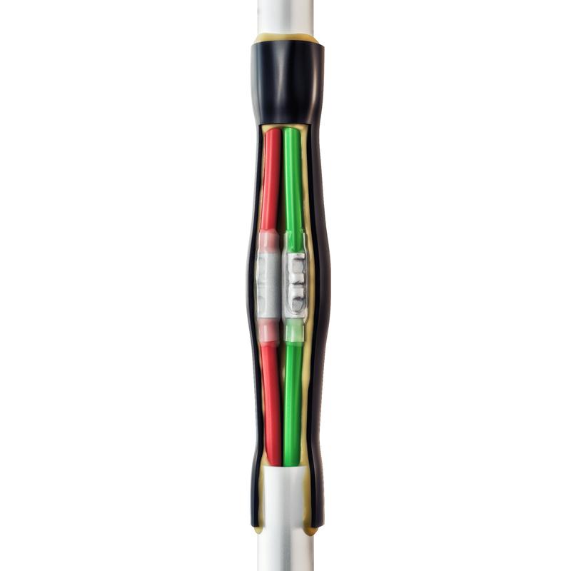 • Муфта имеет два контура герметичности, представленных клеевыми термоусаживаемыми трубками для изоляции контактных соединений (цвет: прозрачный) и общей трубкой восстановления оболочки кабеля (цвет: черный)