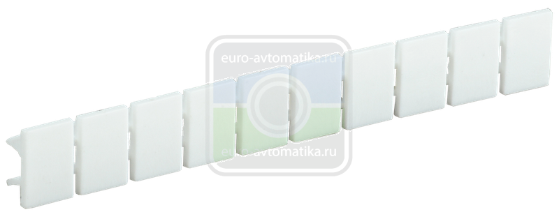 Устанавливаются в соответствующие пазы клеммы. Выполнены в виде пластин с десятью маркировочными площадками. Каждая площадка легко отсоединяется друг от друга.