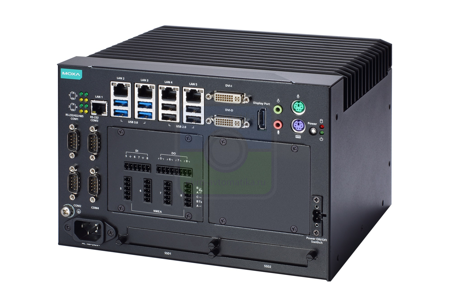 Компьютер на базе процессора x86 Intel Celeron G3902E, 5 x LAN, 9 x USB, 4 последовательных порта, 2 слота HDD/SSD, 4 x NMEA, 4 x DI, 4 x DO, вход питания DC