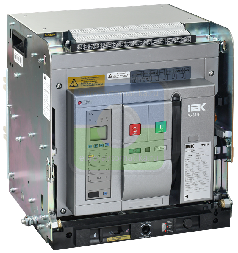 Воздушные автоматические выключатели серии MASTER IEK предназначены для защиты сетей низкого напряжения от коротких замыканий и перегрузок. Автоматические выключатели данной серии обладают оптимальным набором функций, для применения их на объектах жилищного, социального, коммерческого и дорожного строительства, а также энергетики и сельского хозяйства. Воздушные автоматические выключатели серии MASTER IEK поставляются укомплектованными набором аксессуаров для их полноценного применения в состав НКУ: мотор привод 230В, реле включения и отключения (с удержанием) 230В, контакт положения в корзине, набор из 4х перекидных контактов, аварийный контакт. В комплект автоматического выключателя также входит электронный контроллер и, в случае выдвижного исполнения база выдвижного исполнения.