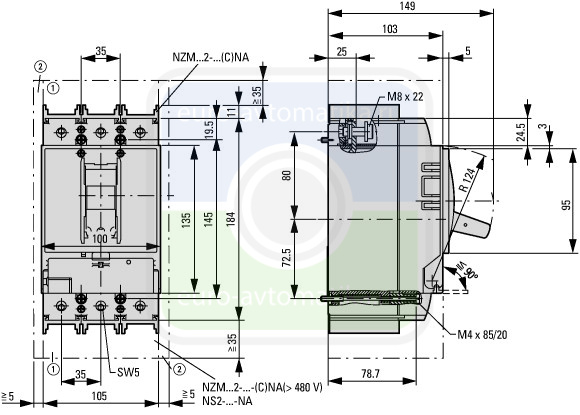 Расчёт параметров нагрева находится в сфере ответственности компании, монтирующей распределительные устройства. Компания Eaton указывает данные по потере мощности устройств. | ||