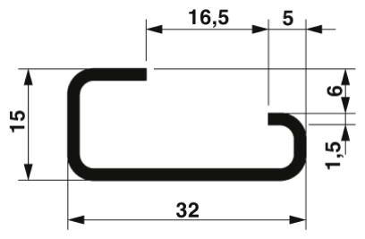Несущая рейка без перфорации, Профиль G, ширина: 32 мм, высота: 15 мм, согласно EN 60715, mатериал: Сталь, оцинкован., пассивирован., длина: 2000 мм, цвет: cеребристый