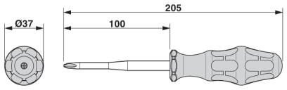 Отвертка, крестообразный шлиц PН (обработка лазером), изолированная, размер: PН 2 x 100, двухкомпонентная ручка, с защитой от перекатывания